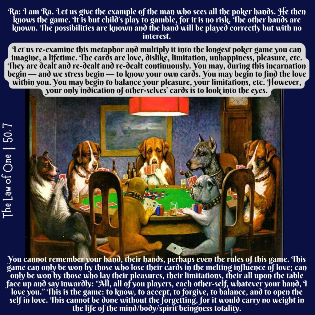 With that said, I wanted to start off with a quick quote from the Law of One books – which I had mentioned in both my brainstorming sessions, about the poker game of life :