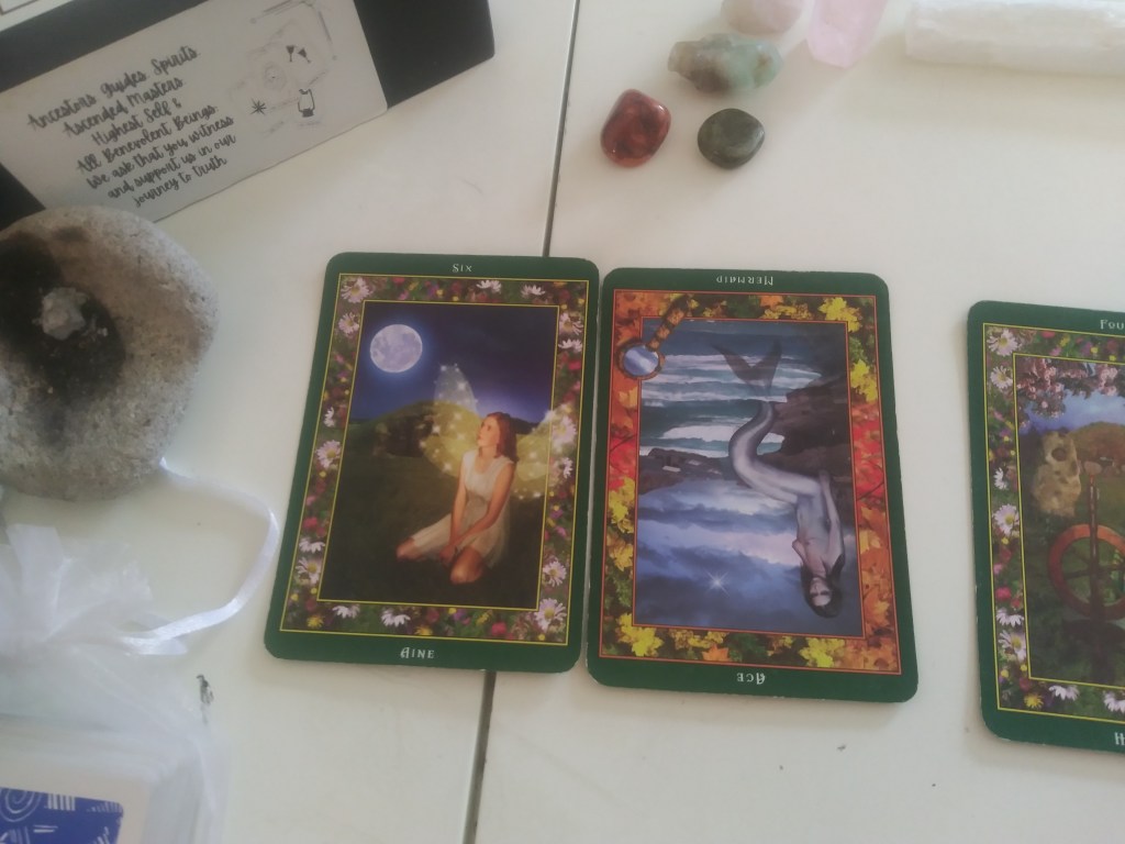 - It is interesting to have the nature of the query be one of such depth and darkness when the current topic and perspective of it is one as auspicious as Aine – this signifies residual hurt from those hard lessons. In my personal workings, whenever I see the mermaid appearing upside down I see extreme and volatile emotions, turbulent waters to navigate, an overwhelm or cutting off from emotions, reactions, responses.